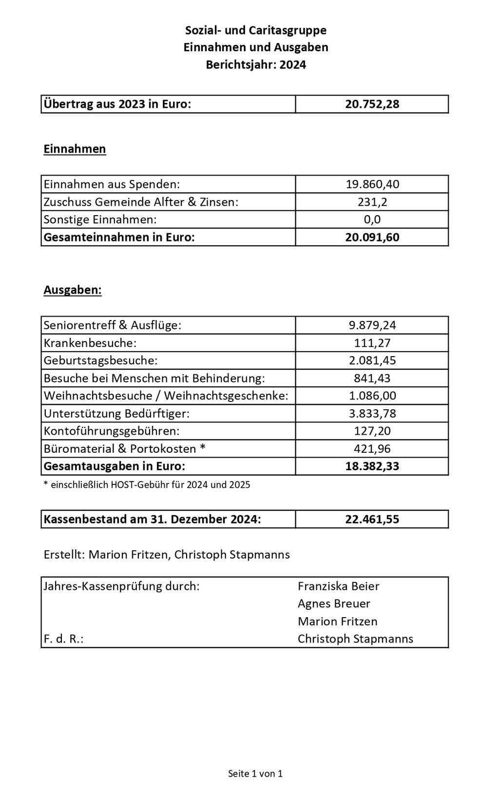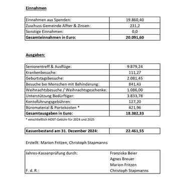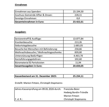 Im Laufe des Jahres haben wir 15 Schwerbehinderten einen Geburtstagsbesuch abgestattet und ihnen in Einzelfällen finanzielle Hilfe gewährt.