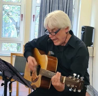 Im Anschluss an die Andacht gab es einen geselligen Nachmittag bei Kaffee und Kuchen. Die Alfterer Jonge gestalteten den musikalischen Rahmen - Kurt Mager als Frontsänger und Gitarrist, Heinz Albert Parkitny mit „dä Quetsch“ (Akkordeon) und Heinz Kreuzberg als Gitarrist. Ein Sahnehäubchen: Die drei Bandmitglieder schnappten sich eine Ukulele und legten gemeinsam mit Hildegard Bircks, Lilo Mager und Rita Kreuzberg, die ebenfalls mit einer solchen Mini-Gitarre ausgestattet wurden, eine fetzige Country-Einlage hin.